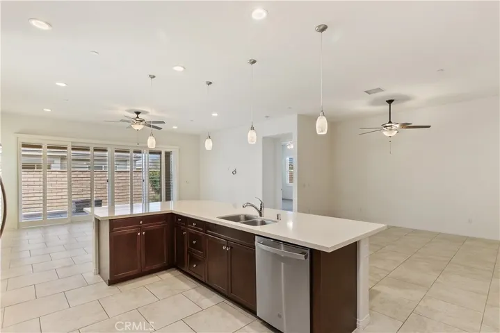 The open kitchen, dining area, and great room flow seamlessly together, creating an ideal space for gatherings. The bright and airy great room is enhanced by a center-meet slider that opens to a relaxing covered patio, offering indoor-outdoor living at its finest. Step outside to a stunning backyard featuring a spa with a water feature, an outside fire-pit, patio misters, and custom pavers—perfect for unwinding or entertaining guests.