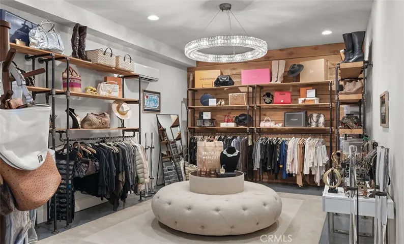 Just steps away, a hidden treasure: a 300-square-foot custom closet and dressing room, complete with its own heating and air. Tucked beside the wine and whiskey grotto, this boutique-style sanctuary blends function and fantasy, ideal for curated collections or seasonal wardrobe transitions. Also on this level is a state-of-the-art golf simulator and access to the 3-car garage, rounding out the home’s lower-level experience.