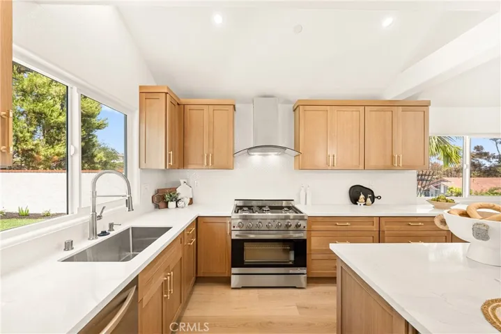 BEAUTIFULLY UPDATED! New kitchen, bathrooms, flooring and fixtures throughout. As you enter the home you are greeted by soaring cathedral ceilings and an open concept floorplan. You walk into the formal living room from the front door and can see the open concept kitchen with large island that seats 4 people. New stainless steel appliance and oak colored shaker cabinets adorn the gorgeous kitchen. The new quartz counter tops and gold faucet and fixtures further enhance the look of your new kitchen. New luxury vinyl plank flooring extends throughout the home as well. The bathrooms all feature new vanities and tiled showers. House has been repiped in PEX, and roof was redone in 2023. Fresh new grass expands from the front yard to the backyard and new plants and sprinkler system are included too!
