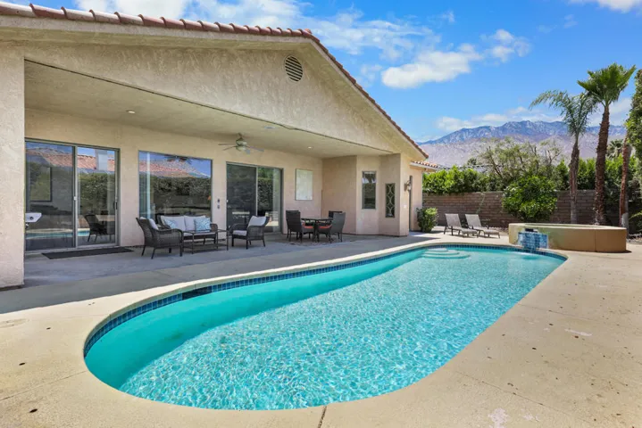 2450 Quincy Way is a beautiful home that offers the perfect blend of comfort, style, and location. Tucked away on a peaceful, private cul-de-sac in the heart of Palm Springs, this sun-drenched desert gem features 3 spacious bedrooms (including two connected Jack & Jill-style), 2.5 bathrooms, and a large primary suite featuring backyard access, a luxurious jacuzzi tub, and dual vanities, every inch is designed for relaxing, entertaining, and feeling truly at home. The bright kitchen features dual islands, bar seating for friends and family, and two prep sinks, making it perfect for hosting. A wet bar makes entertaining easy, while the airy living space offers a decorative fireplace, seamless indoor-outdoor flow, and views of the backyard. Nearly every room captures stunning mountain views and palm-lined skies. Step outside to your own private oasis, featuring a sparkling pool, cascading waterfall, and a large, grassy yard – ideal for kids, pets, or barefoot summer evenings under the stars. The 10,019 sq ft lot gives you room to breathe, entertain, and enjoy the desert dream with no HOA, no Mello-Roos, and a location just minutes from downtown Palm Springs. Whether you’re hosting friends at sunset or watching the home glow at night, this is the kind of home that helps you create memories you’ll want to come back to again and again.