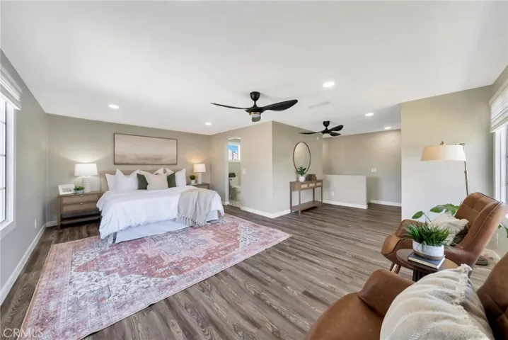 Step into this beautifully remodeled Del Cerro gem, now offered at a compelling new price! This turnkey residence perfectly blends modern luxury with laid-back Southern California living—ideal for buyers seeking style, comfort, and convenience. From the moment you arrive, fresh landscaping and standout curb appeal set the tone. Inside, the open-concept layout seamlessly connects the family room, dining area, and chef-inspired kitchen! Fully remodeled in 2021, the kitchen showcases custom cabinetry, luxurious marble counters, a striking 8′ x 4′ quartz island, and high-end finishes. Recessed lighting and durable luxury vinyl plank flooring complete the modern, inviting design. Downstairs, four spacious bedrooms—including the private primary suite—provide flexibility for families, guests, or home office needs. Upstairs, a separate retreat with its own entrance offers endless possibilities: in-law suite, guest quarters, studio, or media room, complete with an en-suite bath featuring Italian marble flooring. The backyard is designed for entertaining and relaxation. Enjoy sunny afternoons in the completely resurfaced pool with new coping, tile, gunite, epoxy finish, solar heating, and updated equipment. Gather under the new vinyl pergola with string lighting or host weekend barbecues in the reimagined outdoor space featuring new concrete, improved drainage, raised garden beds, and multiple seating areas! The major upgrades include a new A/C and furnace system (2021), a whole-house PEX repipe (2021), a new electrical panel (2023/24), and a Nest thermostat (2021). The roof was inspected and certified before solar installation in 2024, ensuring energy efficiency and lower utility costs. Fresh interior and exterior paint, stacked stone tile accents on the façade, and low-voltage landscape lighting complete the home’s immaculate appeal. Perfectly situated near the 405, 55, and 73 freeways, you’re just minutes from South Coast Plaza, The Camp, The Lab, Segerstrom Center for the Arts, John Wayne Airport, and Orange County’s best beaches. Yet the home sits in a peaceful, well-established neighborhood that feels like a private retreat! This home is truly turnkey. Just bring your furniture and start enjoying the best of Orange County coastal living!