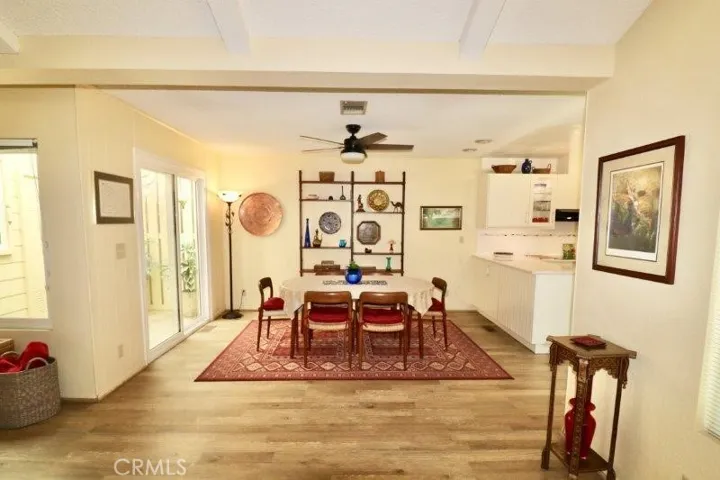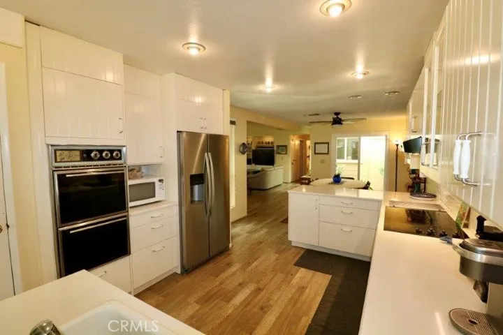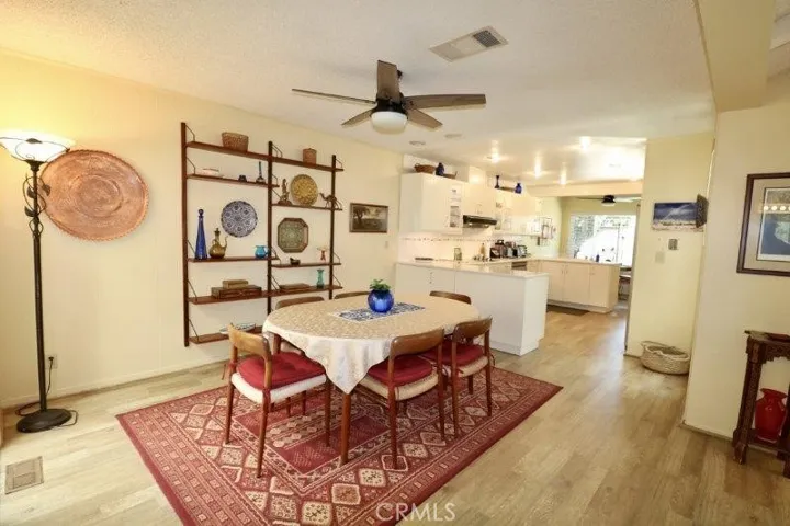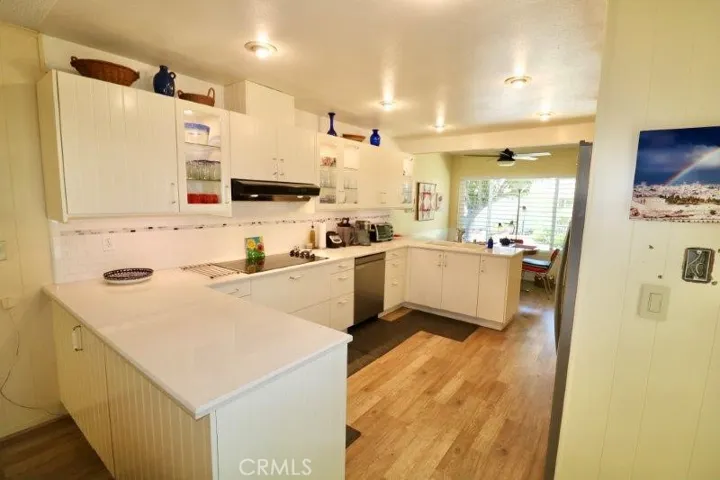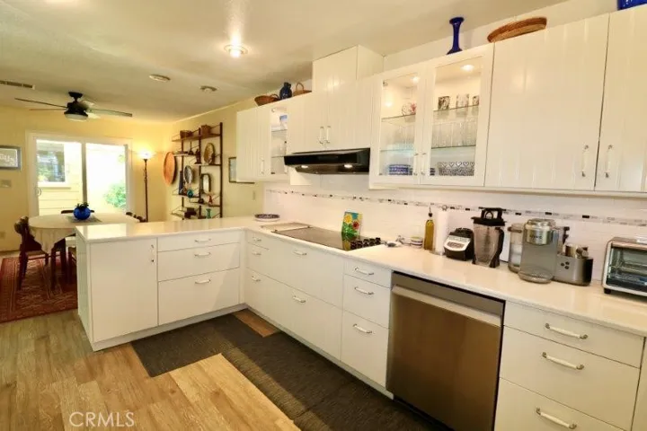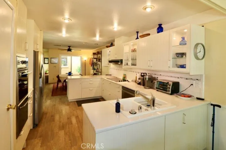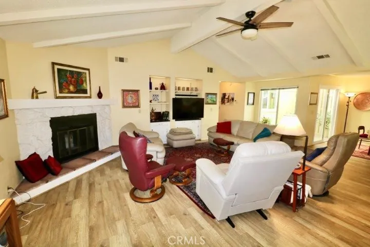 Senior Living 55 +..Look no further, your dream home is here! Enjoy the warm cozy nights by the fireplace in this lovely home. Vaulted ceilings and lots of light from windows and atrium. The open concept living, dining rooms and kitchen make this an entertainer’s dream. Exquisite is the gourmet kitchen with lovely beveled quartz counters, new cabinets with some with glass doors and new appliances. A very light bright breakfast nook for coffee or tea in the mornings. Enjoy two large pantries and direct access from garage with groceries. A very convenient laundry room with washer, dryer and folding area /desk area. A beautiful large Master bedroom with vaulted ceilings has plenty of storage with a walk-in closet, linen closet, additional coat closet and en suite Master Bath. Your guests will be comfortable in the guest bedroom with more storage in wall closet. As we move through this lovely home you can just imagine the delicious aromas wafting out to the private covered patio and garden you will find a nice lemon tree, roses, and even a vegetable garden! Larger than expected workspace, cabinets and extra square footage in the garage make this home is a must see!