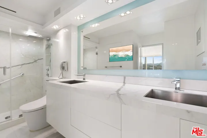 This is one of the finest residences at Ocean Towers, offering the ultimate in coastal luxury and design. A converted and oversized 2-bedroom + open den/office, 2.5-bath home (this unit is a legal 3 bed, 3 bath on public record and has been converted to a large 2 bedroom with an open den/office area. Can be converted back by Buyer), this entertainer’s dream showcases beautiful ocean and canyon views from nearly every room. The chef’s kitchen is fully outfitted with top-of-the-line Miele designer appliances, including a built-in cappuccino machine, and wrapped in elegant porcelain slabs. Select walls throughout the unit are clad in white porcelain making it feel very light and airy. Venetian plaster ceilings and walls, Lutron smart lighting, integrated surround sound with LED and RGB mood lighting, and electronic window shades bring cutting-edge automation and ambiance to every corner. The exquisite primary suite features pocket sliding doors that open directly to the view, delivering an elevated sense of serenity and openness. Ocean Towers is a full-service building offering 5-star amenities including 24-hour concierge and security, valet parking, pool, spa, gym, and more.