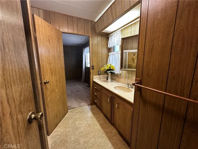 This home features 2 bedrooms and 2 full bathrooms, including a large master suite with a spacious bathroom and separate vanity area. The laundry room is conveniently located near the second bathroom.