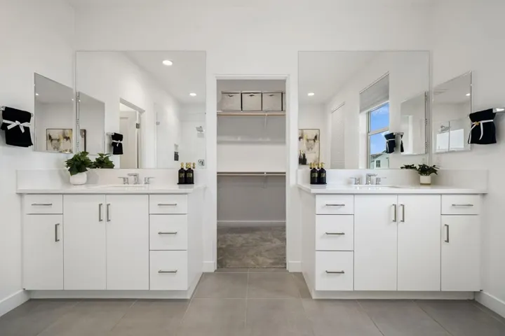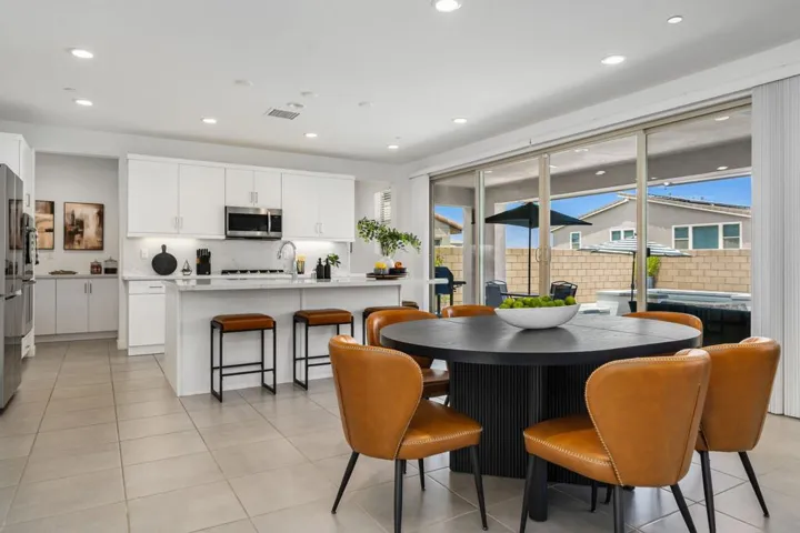 Introducing a beautifully crafted home in the heart of the vibrant University Park community in Palm Desert, where luxury meets modern living. This exquisitely upgraded residence has been expanded as an upgrade during construction and welcomes you with Mountain View’s, soaring ceilings and an abundance of natural light, providing a warm and inviting atmosphere. Step inside to discover a spacious layout featuring 4 bedrooms and 31/2 baths, ensuring ample space for both family and guests. The open-concept entertainment area is designed for effortless hosting, with the kitchen, dining, and living areas flowing seamlessly together. The gourmet kitchen boasts double ovens, a 5-burner stovetop, and luxurious upgrades like premium countertops, a stylish backsplash, and a generous pantry.Experience the harmonious indoor-outdoor lifestyle with seamless connectivity between the living spaces and a serene, private courtyard located at the home’s center. The backyard is truly an entertainer’s paradise, offering a large pool with a tanning deck, a rejuvenating spa, and an expansive covered patio area perfect for gatherings.Retreat to the primary suite, a true haven of relaxation, featuring a spacious walk-in closet and an opulent primary bathroom. This luxurious escape is adorned with custom details, including dual vanities, a luxurious soaking tub, and an expansive walk-in shower. Venture upstairs to find a vast loft currently serving as a media room, providing additional versatile space.Daily convenience is elevated with a dedicated laundry room offering ample storage, and enjoy significant savings on electricity with a leased solar system, making this home as efficient as it is elegant.Residing in the new University Park community comes with an array of perks, notably The Grove–a resort-inspired oasis for residents. Indulge in lavish amenities including resort-style pools, pickleball courts, a state-of-the-art fitness center, and a shaded playground. The community’s social heartbeat is an event lawn complete with a stage, a cozy fire pit, and a barbecue area for memorable evenings with family and friends.Don’t miss your chance to own a piece of paradise in one of Palm Desert’s most sought-after communities. This home is not just a residence, but a lifestyle.