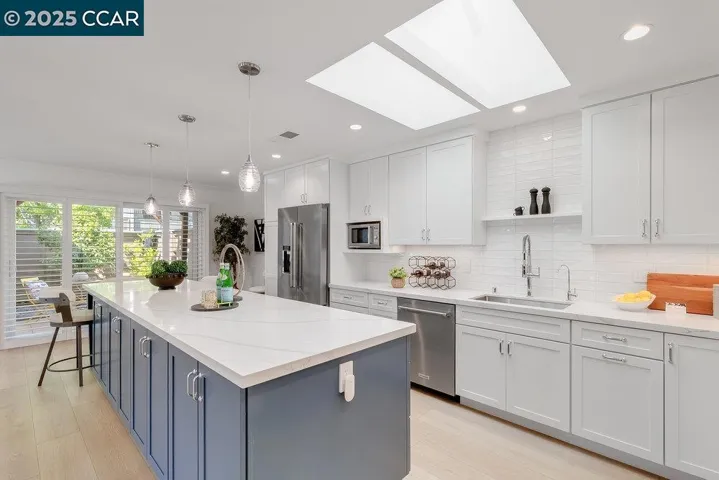Light, Bright & Beautifully Updated Yosemite Model in Rossmoor! Welcome to 1517 Rockledge Lane, Unit #2 is a sun-drenched, level-in unit that perfectly blends modern updates with comfortable living in the heart of Walnut Creek’s premier 55+ active adult community. This expanded Yosemite model features a spacious foyer and a fully remodeled modern kitchen with quartz countertops, a large island with bar seating, modern backsplash, induction stove, multiple skylights, and ample storage including pantry space with pull outs and deep drawers—perfect for cooking, entertaining, and everyday ease. Enjoy two beautifully upgraded bathrooms, including a spa-like hall bath oasis and a stunning primary bath with a luxurious soaking tub is a true retreat. The home is filled with natural light and features new windows, plantation shutters, luxury vinyl flooring throughout and serene outlooks from every room. Step outside to a sunny private patio, ideal for morning coffee or quiet afternoons. Additional highlights include newer washer&dryer, assigned carport parking space & plenty of guest parking for convenience. Don’t miss this move-in ready gem with all the upgrades you’ve been looking for come experience the Rossmoor lifestyle today where you can enjoy pickleball, tennis, golf & more