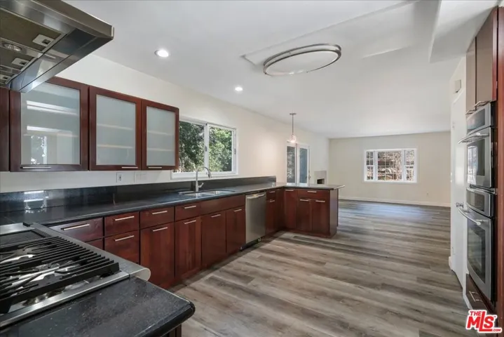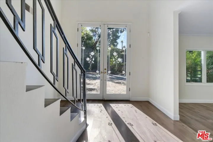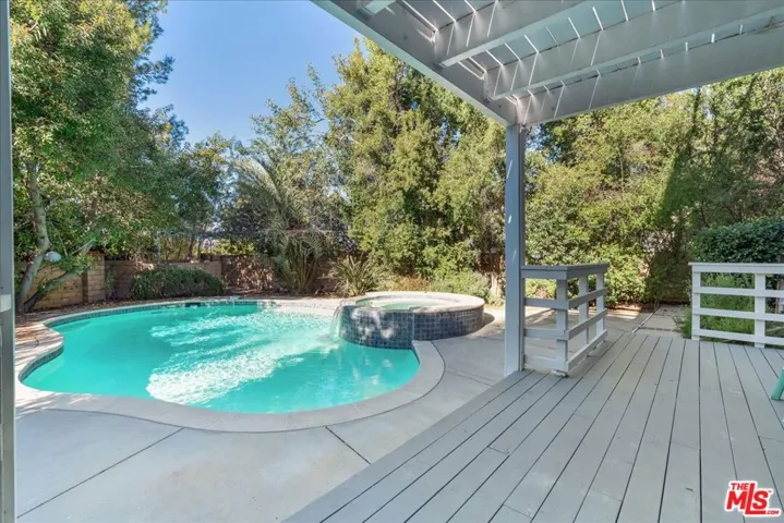 Privacy and space invite you to call this Woodlands Hills property home! Nestled on a private cul-de-sac st, this home is minutes from shopping, restaurants and more yet offers secluded peace and quiet. The gated driveway opens to the two-car garage and large home entrance. Walking inside showcases high ceilings in the entry and hardwood flooring throughout. The bottom floor has a large living room, dining room and den off the kitchen. The kitchen has been fully remodeled with stone counter tops, cabinetry and stainless steel refrigerator, dishwasher and gas stove/oven. The den also has a working fireplace and is the perfect area to watch a movie on a cozy night with friends and family. The backyard is ideal for entertaining as well and features a large pool and spa. Up stairs has four bedrooms and a bonus room that is perfect for a playroom or office. The primary bedroom has a balcony, walk-in closet and full bathroom with shower and double sinks. Come take a look at this property today!