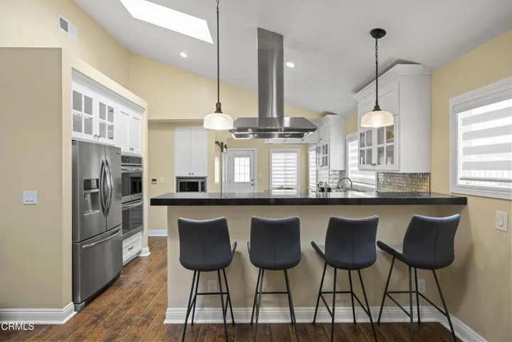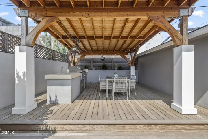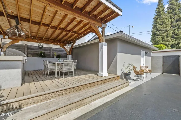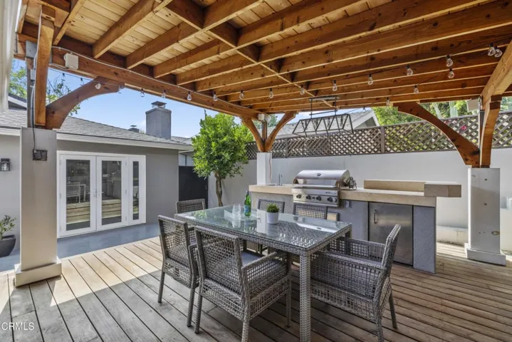 Ideally situated on a serene cul-de-sac in the heart of coveted Sherman Village, this beautifully updated residence offers the perfect blend of sophistication, comfort, and convenience. Enjoy unparalleled accessibility to premier shopping, acclaimed restaurants, Whole Foods, and a variety of nearby amenities.Thoughtfully designed with high ceilings and an abundance of natural light, the home features an open-concept floor plan that seamlessly connects the main living spaces. The chef’s kitchen is a standout, boasting granite countertops, stainless steel appliances, a walk-in pantry, and a generous breakfast bar–perfect for casual dining or entertaining.Warm, wide-plank manufactured hardwood flooring flows throughout the home, complementing the spacious bedrooms and updated finishes. The primary living areas open effortlessly to an exquisite outdoor setting, where a custom teak deck and built-in BBQ island create the ideal space for entertaining or al fresco dining under the stars.The detached two-car garage offers flexible functionality–ideal for secure parking, a home gym, studio, or potential ADU conversion (buyer to verify). Lush, drought-tolerant landscaping enhances the curb appeal while providing ease of maintenance.A recent pre-inspection report is available for added peace of mind, underscoring the pride of ownership and meticulous care throughout the property.This is a rare opportunity to own a turnkey home in one of the Valley’s most desirable neighborhoods–where style, setting, and substance come together seamlessly.