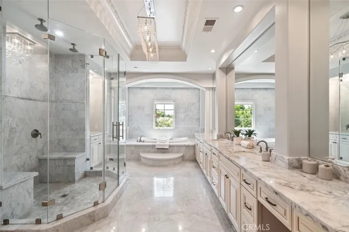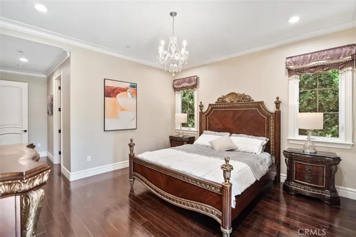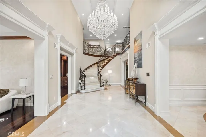Exquisite and luxurious Custom Estate featuring 6 bedrooms 7 baths, including 2 Master Suites with Jacuzzi Tubs (1 downstairs). The first floor features 2 suites with bathrooms, and laundry room. All suites with wood floors, walk-in closet. Built in 2012 keeps like a new property with many of today’s modern amenities and situated in the award-winning Arcadia School. House is 6,022 SF with a large green landscaped 15,161 SF lot. South facing, Step into Grand Foyer and witness floor to ceiling elegance, Marble floors, marble stairs with custom iron handrails, elaborate crown moldings and wainscoting, exquisite crystal chandeliers. Radiant Formal living room w/ fireplace, Formal dining room w/ elegant faux wall painting, library w/ built-in bookshelves, Gourmet kitchen with SubZero and Wolf appliances, granite counters, lavishly crafted cabinets with lots of modern storage convenience and elegant crystal lighting luminating the area. Separate wok kitchen. Adjacent to kitchen, large walk-in pantry, breakfast nook, wet bar with custom built-in wine cabinets and granite counters. Entertain in huge family room with beautiful built-in media cabinets wire ready with surround speakers and wood framed glass french doors. Upstairs with 2nd family room for more family fun. Built-in intercom & music system, wall mounted LCD for lighting control, alarm & camera security system & more. 3 car attached garage with a lot of built-in cabinets. This home has been beautifully maintained and is move-in ready. Located near School, Transportation, Arcadia Mall, Santa Anita Park, Racetrack and the beautiful Arboretum.