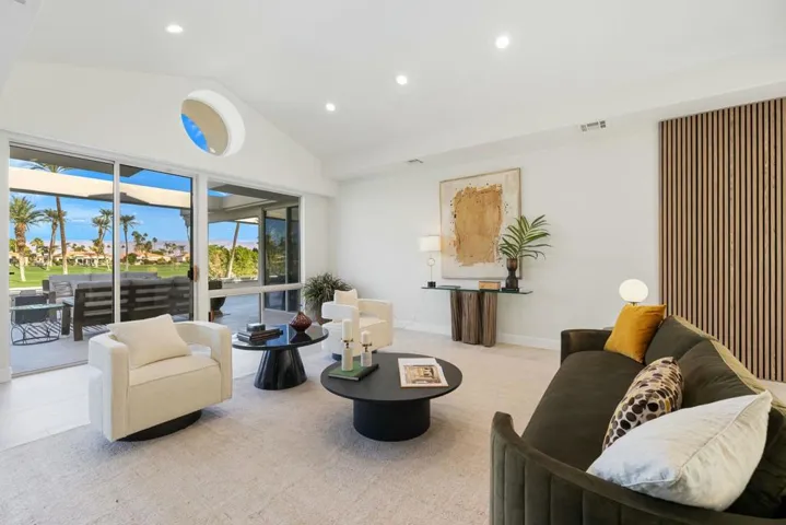 Stunning Furnished Single Family Stand-Alone Home, this Nelson floor plan is perfectly situated to enjoy breathtaking Fairway, Mountain, and Lake Views. THREE NEW HVAC UNITS JUST INSTALLED. With 3 bedrooms & 3 baths, includes a spacious casita, this home overlooks double fairways, providing a serene backdrop for your lifestyle. Featuring custom Upgrades that harmoniously blend Luxury with the relaxed charm of desert living. Enjoy the inviting ambiance of the Living room which showcases a floor-to-ceiling see through Fireplace and a stylish wet bar, alongside a cozy Den. Dining area offers a wall of windows allowing lots of natural light through–perfect for entertaining guests. The Chef’s Kitchen is equipped with Stainless Steel Appliances, custom Hood, rich Cabinetry, and sleek Porcelain Slab Countertops. Retreat to the spacious Primary Suite, which offers a luxurious tub, separate shower and a walk-in closet. The 2nd Guest Room also features a walk-in closet with French doors leading out to the Courtyard Patio. The Separate Casita, offers a full en-suite bath and provides an ideal space for your Guests. Step outside to the expansive patio to soak in the majestic Mountain Views, all in the prestigious Indian Wells location. Enjoy access to the newly opened Desert Horizons Country Club, featuring a State of the Art Fitness & Wellness Center, Sports Pavilion & an 18-hole private Golf Course complimented by 20 community pools. Don’t miss this incredible opportunity to embrace the desert lifestyle!