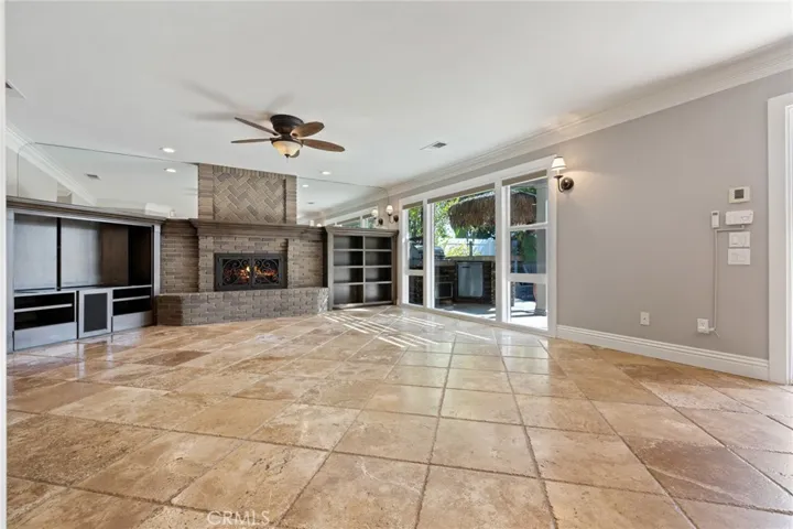 A new XL picture window and matching sliding glass doors in the second living room enhance the indoor/outdoor living, complete with custom electronic blinds. In the backyard to enjoy a custom pergola with fan and lighting, Pebble Tec pool and spa with Wi-Fi controls, a built-in BBQ, and a gas firepit—all surrounded by lush landscaping.