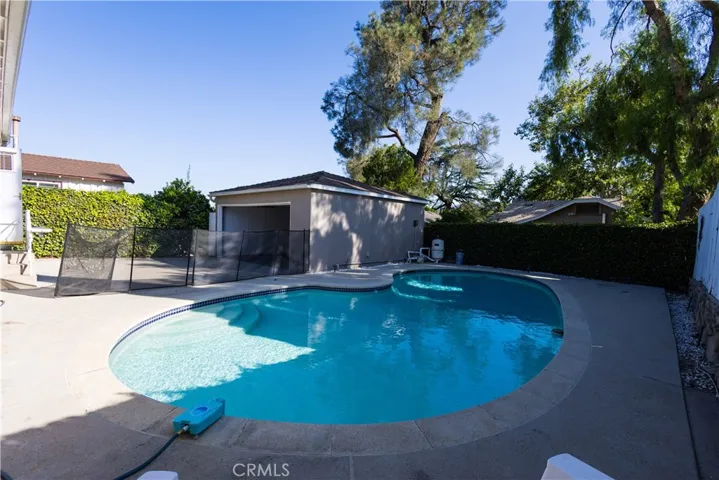The private backyard includes a sparkling pool and a versatile, detached 2-car garage, finished with freshly-painted, paneled walls, interlocking foam tile gym flooring, and two ceiling fans including bright LED lighting—making it an ideal space for a home gym, cabana, bonus room, or storage. Available now. This beautifully updated, move-in ready gem won’t last. Schedule your private showing today!