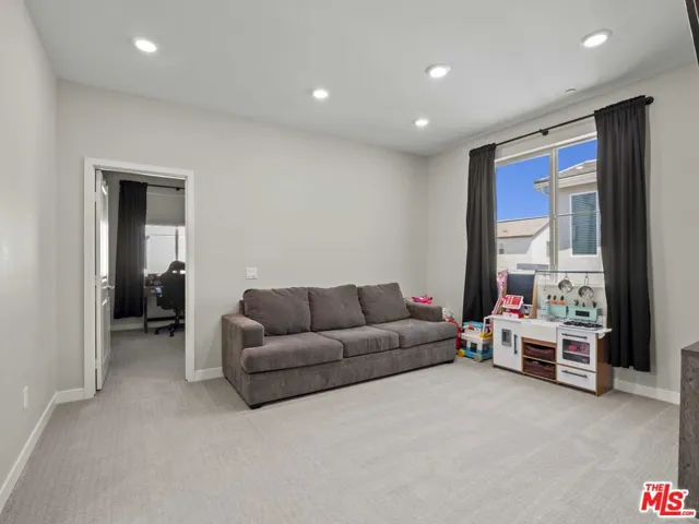Experience the beauty of this nearly new Valencia Five Point home with 3 Beds, 2.5 Baths, complete with a spacious loft could make a 4th bed, solar, dual yards and 2 car garage. Designer touches throughout the residence creates an inviting ambiance, highlighted by a beautifully appointed kitchen and dining area featuring a shiplap wall design. The chef’s kitchen boasts a glass tile backsplash and top-of-the-line stainless steel GE Monogram appliances, complemented by a custom center island with shiplap detailing and a convenient walk-in pantry. The living room is highlighted by a custom batten board wall, while the dining area features a large sliding door that opens to a meticulously manicured yard, adorned with a stylish light fixture. The bright and airy loft serves as a perfect retreat, while the primary suite offers a private balcony and a luxurious ensuite bathroom, complete with a soaking tub, a glass-enclosed walk-in shower, and a generous walk-in closet. Two additional spacious bedrooms share a full bathroom with dual sinks, and the upper level is completed by a well-appointed laundry room. Luxury vinyl plank flooring and upgraded window coverings add to the home’s appeal, while solar panels enhance its energy efficiency. The dual fully landscaped yards feature a fully covered patio with a ceiling fan, perfect for outdoor entertaining. Located just minutes from the 5 Freeway, Highway 126, Six Flags Magic Mountain theme park, and all Valencia has to offer. Residents enjoy access to a weekly farmers market, spectacular resort-style pools with cabanas, gas barbecues, a children’s play area, community gardens, walking and golf cart trails, and breathtaking mountain views throughout. Don’t miss this opportunity to make this your New Home!!