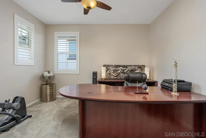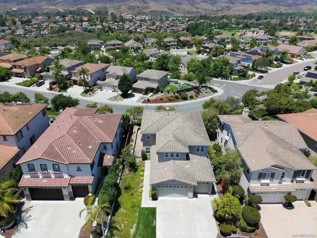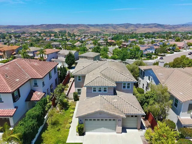 Panoramic Views | No Mello Roos | Arrowood Living: This beautifully maintained 4bd/3ba home with 2,887 sqft of living space is located in the sought-after master-planned community of Arrowood, and offers 180-degree mountain and hillside views. It’s an ideal blend of comfort and function. The bright, open floor plan features a spacious kitchen with granite countertops, stainless steel appliances, a large center island, and an extended butler’s pantry with ample storage. Plantation shutters, recessed lighting, ceiling fans, and custom built-ins add both style and practicality throughout. Upstairs, the generous bonus room can easily serve as a fourth bedroom, media room, or office. The oversized primary suite offers sweeping views and a large bathroom with dual vanities, a soaking tub, walk-in shower, and separate walk-in closets. Additional features include a tankless water heater, water softener, and central AC. Outside, the professionally designed backyard includes stamped concrete and mature landscaping—perfect for relaxing or entertaining against the scenic backdrop. Enjoy access to the Jr. Olympic swimming pool, Arrowood Golf Course, walking trails, and more. Located in the Bonsall School District and close to parks and shopping. No Mello Roos and low HOA!