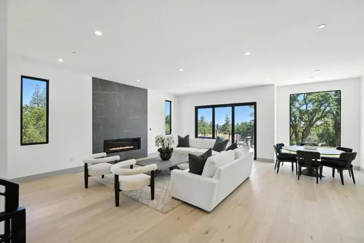 Discover brand new modern luxury in this exquisite contemporary home offering sweeping views of the valley and mountains. Designed with an open-concept layout, the residence features soaring 10-foot ceilings across three levels, including a bright and light filled basement that opens to a spacious patio making it ideal for entertaining or a separate ADU. The interior includes 6 bedrooms, 5 full baths, and 2 half baths, along with a formal living room and a separate dining room. The expansive family room and kitchen combination is a chefs delight, showcasing Italian cabinetry and high-end appliances, including a gas cooktop. Additional amenities include a dedicated entertainment room, private office, home theater, and a wine cellar. Elegant finishes such as hardwood flooring, a durable metal roof, and premium thermally broken aluminum windows add to the home’s appeal. Parking is abundant with a 1-car attached garage and a 2-car tandem detached garage. Set on approximately one-third of an acre, the generous backyard is anchored by a mature oak tree and enhanced by breathtaking views, offering a true indoor-outdoor living experience. Easy access to Rancho Shopping Center and Loyola Elementary and just minutes to downtown Los Altos and the prestigious Los Altos Country Club.