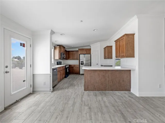 Beautiful new and never lived in home featuring 3 bedrooms and 2 baths with 2,000 square feet of living space. You are welcomed by a landscaped front yard with concrete walkway, rockscape are artificial turf as you approach the inviting covered front porch. As you open the door to the spacious home with large front family and dining room with cabinetry along the wall that leads up to the open kitchen and living room. The home offers 3 good sized bedrooms including a primary bedroom with walk-in closet and primary bathroom with dual vanities. The hall bathroom services the 2 other bedrooms and guests. The home has modern low maintenance vinyl laminate flooring throughout. The home has a full size indoor laundry and attached garage with finished drywall. This home sits on a spacious lot that with a large backyard that can be brought to life making it a great space to entertain family and friends. The home is located in a quiet neighborhood but has quick access to the 15 Freeway using either Village Dr or Air Expressway. Be sure to add this move in ready home to your list today.