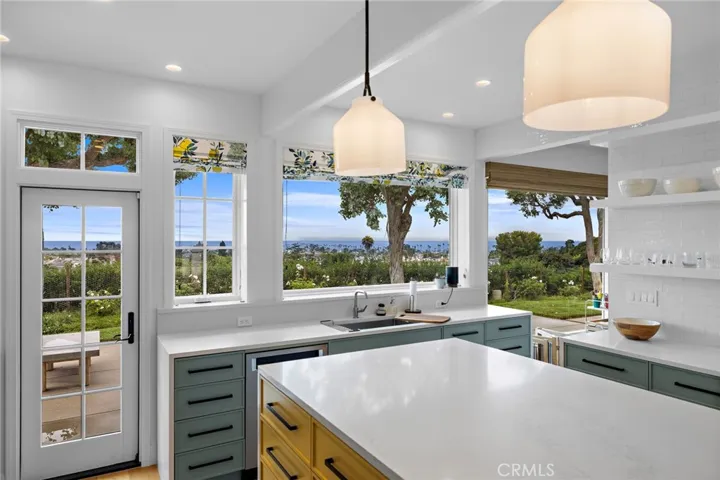Located in the highly sought-after Harbor View Hills neighborhood of Corona del Mar, 3007 Harbor View Drive is a stunning, single-level residence offering breathtaking panoramic ocean, Catalina Island, and sunset views from nearly every room. This beautifully remodeled home features 3 bedrooms, 2.5 baths, and over 2,475 square feet of refined living space, highlighted by expansive open-concept areas, three fireplaces, custom built-ins, and floor-to-ceiling windows that flood the home with natural light. The chef’s kitchen and luxurious bathrooms have been thoughtfully updated with designer finishes, while French doors throughout create a seamless indoor-outdoor flow to a wraparound courtyard, multiple patios, and a private 13,770 sq ft lot surrounded by mature landscaping, including gorgeous olive trees. Perched on a premier end lot with only one neighbor and 270-degree views, this property offers an unmatched sense of privacy and tranquility, all just minutes from world-class dining, shopping, beaches, and top-rated schools. This is coastal living at its finest—a rare opportunity to own a remarkable view home in one of Orange County’s most prestigious communities.