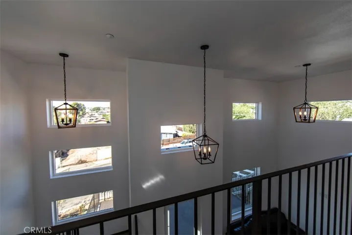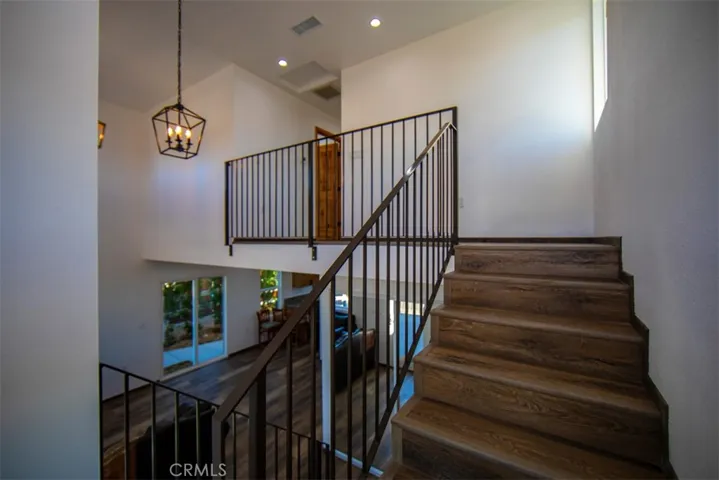 The open floor plan showcases cathedral ceilings, abundant windows, and a seamless flow between living, dining, and kitchen spaces. The chef’s kitchen includes an industrial-grade 6-burner gas stove, Sub-Zero-style refrigerator, built-in microwave, dishwasher, stainless steel sink with disposal, and granite countertops for a refined finish.