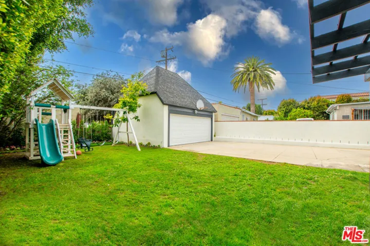 Enhanced Storybook Tudor w front porch, exquisite hardwood floors, new kitchen & bathrooms, 2 car garage, & outdoor living. Open the front door to the expansive living room boasting a barrel ceiling, large frontal windows, tons of natural light, & a fireplace. The formal dining room showcases another impressive window overlooking the front porch & is complemented by a coved ceiling. Through the dining room, enter the brand-new eat-in kitchen w a cathedral ceiling complete w brand-new SS appliances, countertops + cabinets, & a side exit to the driveway. The 3 BDs downstairs are spacious & the 2 bathrooms are newly renovated with a modern touch. The master BD offers an en-suite BA w dual vanity, a beautiful shower, & walk-in closet. BD #2 has sliding glass doors that offer access to the backyard/patio. All lower BD have walk-in closets & the laundry closet is tucked away in the hall w side-by-side WD. The loft upstairs provides extra privacy w another sizable bedroom. Entertain or enjoy family time in the backyard of the property – paved area w a basketball court + 2 car garage, grass yard w patio & pergola. View this property ASAP if you have your eye on the Hancock Park area. Swingset no longer on property.