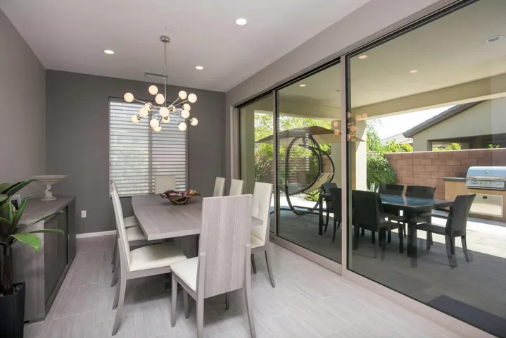 Beautifully upgraded home nestled within the gates of Trilogy at The Polo Club. This highly sought-after Nice plan is thoughtfully designed to blend indoor comfort with outdoor living, making it a perfect desert retreat or full-time residence.At the heart of the home is a show-stopping kitchen, featuring custom quartz countertops, upgraded cabinetry with pull-out shelves, and premium stainless steel JennAir appliances. The Smart Space offers extensive cabinetry and built-in workspaces, ideal for hobbies, storage, or a home office. Wood-look tile flooring flows throughout the common areas, adding warmth and style to every room.Entertain with ease using the dual rolling glass doors, complete with integrated screens, that lead to the expansive covered patio and custom landscaped backyard. The outdoor space is a true extension of the home, complete with a built-in BBQ and tranquil ambiance–perfect for evening gatherings or peaceful mornings.The primary suite features a spa-inspired bath with dual vanities, a large walk-in closet, and serene views of the rear yard. The guest suite is ideally positioned on the opposite side of the home, offering maximum privacy for visitors.This energy-efficient home includes the Shea Xero solar system, designed to offset your annual electric bills and promote sustainable living.An optional Polo Club Membership is available for transfer ($1,875 fee), offering access to a 25,000 sq. ft. clubhouse with a state-of-the-art fitness center, resort and lap pools, tennis, pickleball, an indoor golf simulator, and the award-winning June Hill’s Table restaurant.Don’t miss your chance to enjoy resort-style living year-round in one of the desert’s most desirable communities!