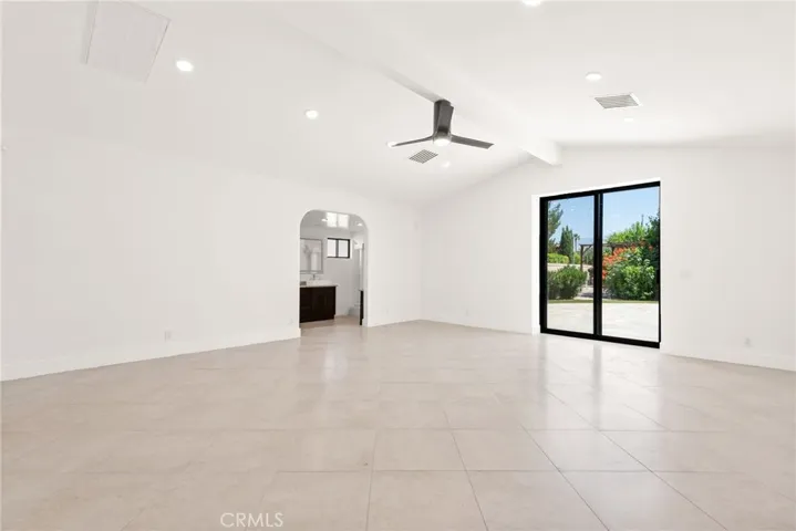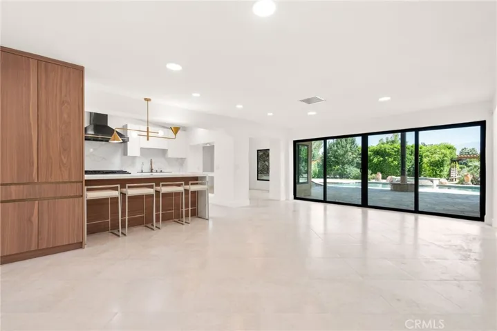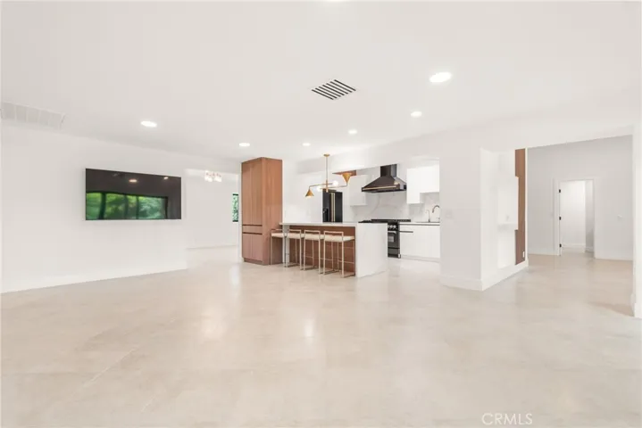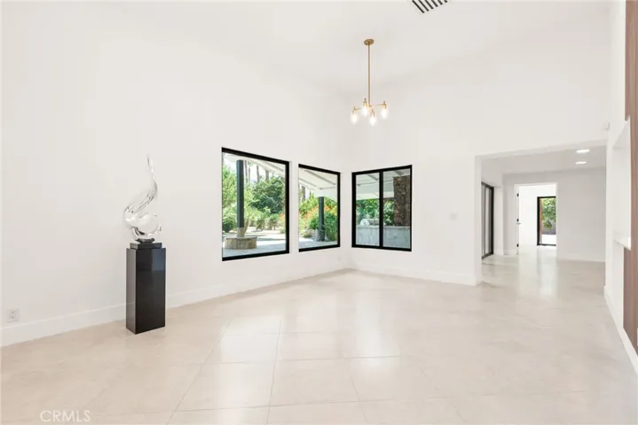 Step into soaring ceilings, an open-concept layout, and abundant natural light enhanced by new modern windows and sliding glass doors. The interior showcases stylish accent walls, large-format porcelain tile flooring, modern aluminum AC registers, all-new recessed LED lighting, and exquisite Restoration Hardware chandeliers. The fully updated three-unit HVAC system, new electrical switches, and chic interior doors and moldings reflect meticulous attention to detail.