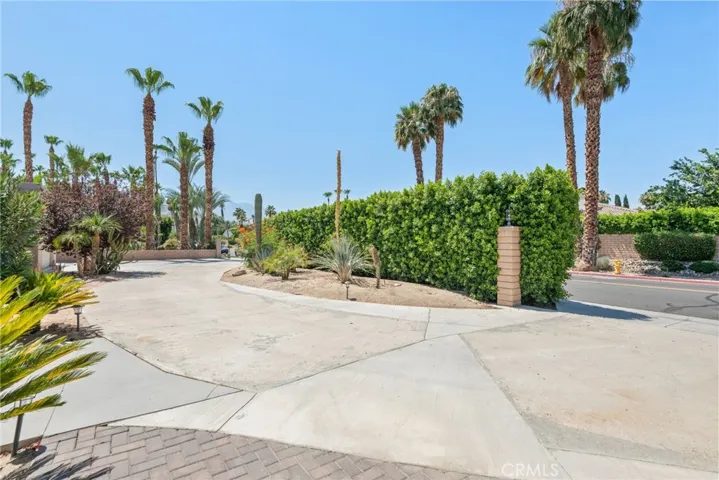 Welcome to your private, fully remodeled oasis in the exclusive Clancy Lane area of Rancho Mirage. This extraordinary 4-bedroom, 4-bathroom estate sits on an oversized 1-acre (40,946 sqft) lot offering the tranquility of a private park with lush landscaping, mature fruit trees, and luxurious finishes throughout. A circular driveway leads to a striking custom pivot front door, setting the stage for the sophisticated design inside.