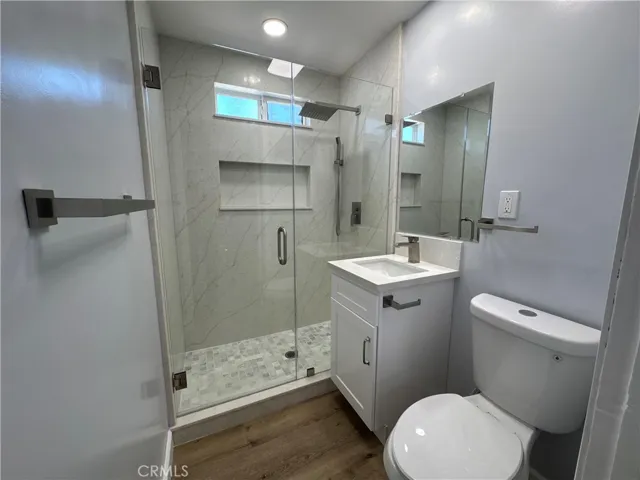 This beautifully renovated two-bedroom, two-bathroom unit is located in a classic 1930s Spanish-style building, full of timeless Los Angeles charm. Tucked away in the back of the property, this private, west-facing unit is bathed in natural light and offers a peaceful retreat in the heart of Inglewood. Inside, you’ll find all-new flooring, a thoughtfully redesigned layout, and two fully renovated bathrooms with stylish modern finishes. The brand-new kitchen features quartz countertops and stainless steel appliances, offering a sleek, functional space perfect for any home cook. In-unit washer and dryer hookups add everyday convenience without compromising style.