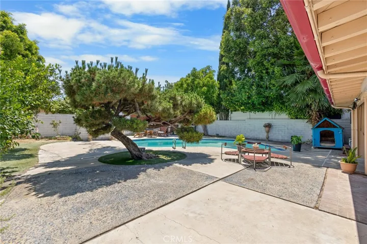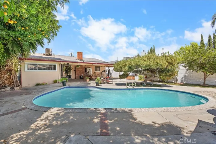 The backyard is ideal for entertaining, offering a sparkling pool, a covered patio, and plenty of privacy. Detached 2-car garage plus a 2-car driveway provide ample parking.