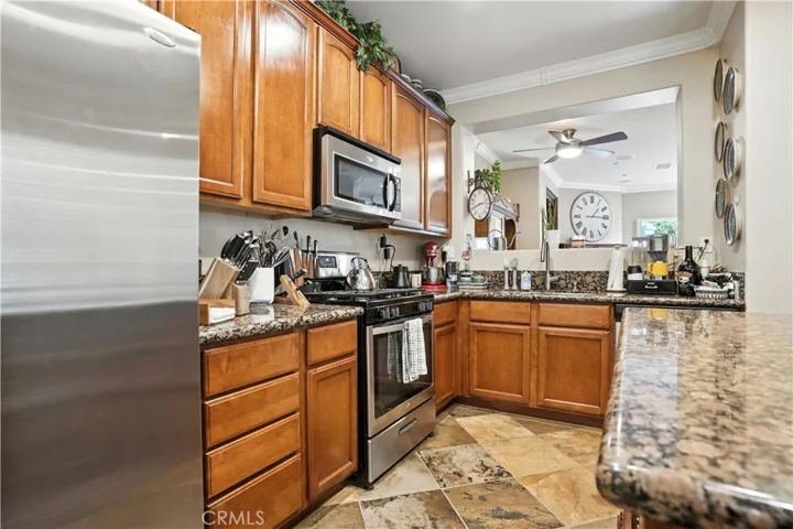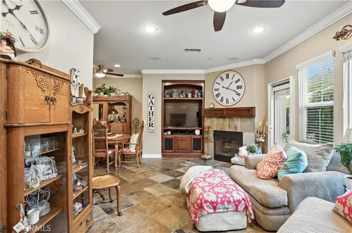 Tucked in the desired Vista Del Lago community this model quality 3 bed 2.5 bath townhome features a custom kitchen island, decorative crown molding and slate-stone tile floors. The kitchen offers a spacious pantry, granite counters tops, stainless steel appliances and rich maple wood cabinetry. The living room offers a cozy fireplace, a built-in entertainment niche, and built in surround sound, plus a screen door that invite a cross-breeze. Additionally the glass door and large windows fill the home with natural light but with added window tint to help against heat. A convenient powder room downstairs with a beautiful decorative glass bowl sink. Upstairs, the primary suite enjoys hill views, a walk-in closet with organizer and an ensuite bath with double-sink vanity. Ceiling fans and recessed lighting with dimmers throughout offer added lighting and comfort. Outdoors, enjoy a private cozy backyard with a garden, perfect for relaxing. Additionally the home features an attached long garage with direct home access that can fit 2 small cars or 1 car and motorcycle plus added storage space. Enjoy lake views within the community, plus a playground, pool, spa and additional parking space available. Convenient close to the lake, shopping, dining. Also close to the 15 freeway, schools, storms stadium, golf, and entertainment. Contact me if you’d like to take a tour of this home.
