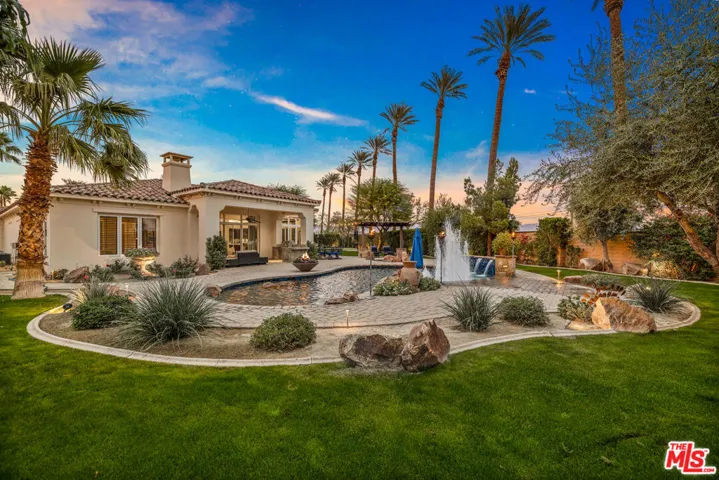 Resort style living home at The Palms, world famous golf course in a beautiful, guard gated community nestled in La Quinta. Updated & newly furnished 3+3. Open floor plan home with separate entrance casita. Situated on nearly 1/2 an acre complete with beach entry pool, separate hot tub, built in BBQ & seating area, 5 hole putting green and sand trap. Spectacular lit up yard makes for magical evenings in the desert. Chef’s kitchen with island. Master suite has double vanities, updated walk in shower, soaking tub and large walk in closet. Attached 2 car garage + golf cart garage. 2 bedrooms and 2 full baths in the house, 1 bedroom and 1 full bath in the casita. Ready to enjoy for the season, call your agent for monthly pricing. PGA West Golf Courses just around the corner. Min 30 day rental, call for summer and in-season rates