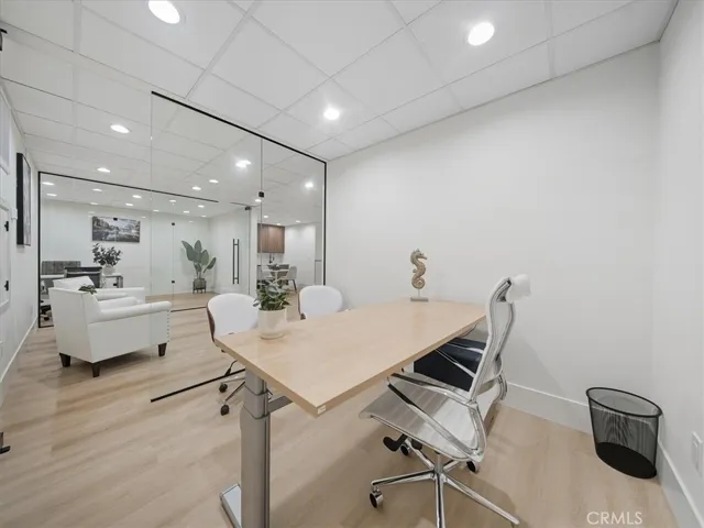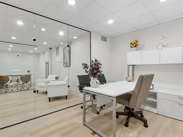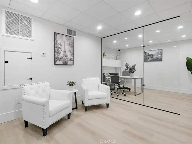 Step into a refined workspace that blends form, function, and aesthetic appeal. From the moment visitors arrive, the reception area’s upscale ambiance conveys professionalism. Glass-walled conference rooms allow for privacy without sacrificing transparency, while private offices offer quiet focus. Practical amenities—including two kitchenettes and ample parking—are matched by design-forward finishes, such as statement lighting and bespoke cabinetry. This space reflects a commitment to quality and is ideal for businesses looking to brand themselves through their office environment.