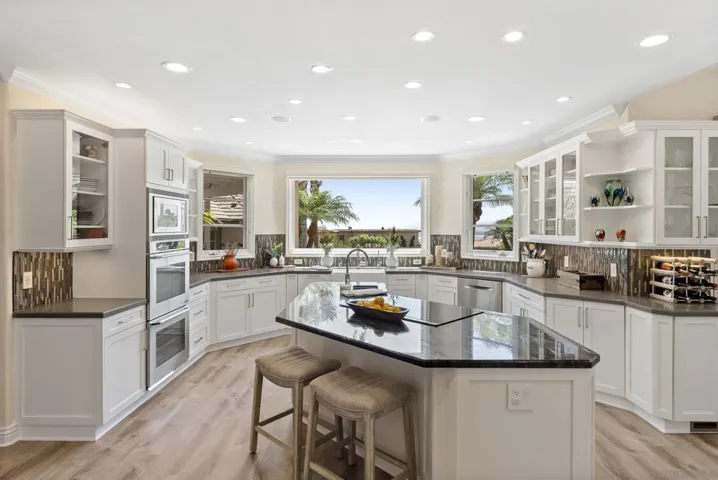Just Reduced! Discover coastal luxury at 617 Gage Drive, an exceptional home in Point Loma’s coveted La Playa and Wooded Area. Set on a rare ½-acre lot, this 4-bedroom, 4.5-bath residence with a detached guest house offers breathtaking south-facing views of Coronado, San Diego Bay, and the downtown skyline from nearly every room. Each bedroom includes an en-suite bath and walk-in closet, while the open, light-filled layout features original hardwood floors and a modern chef’s kitchen with stainless-steel appliances and custom finishes. Two upper-level balconies invite seamless indoor-outdoor living and panoramic views. Step outside to a resort-style backyard oasis with a sparkling pool and waterfall, spa, outdoor fireplace, basketball court, putting green, and multiple areas for dining and lounging—perfect for entertaining or relaxing in the sun. The home also offers solar panels, a Tesla charger, and a 3-car garage. Located on a quiet, tree-lined street just minutes from Liberty Station, Sunset Cliffs, the bay, and top-rated schools, this property combines timeless elegance with modern comfort. With its protected view corridor and premier location, 617 Gage Drive presents a rare opportunity to own a truly exceptional piece of coastal San Diego real estate. Elegant. Private. Distinctly La Playa.