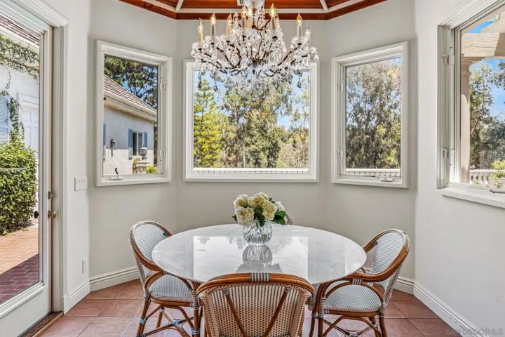 Timeless elegance meets everyday charm in this beautifully reimagined Fairbanks Ranch estate, perfectly located on the coveted North side. Set on nearly 2 acres of peaceful, tree-lined grounds, this warm and welcoming residence blends classic architecture with close to half a million dollars in thoughtful upgrades—creating a home that feels both grand and grounded. Inside, soaring ceilings and rich woodwork set the tone. A dramatic, wood-paneled library with fireplace offers a cozy retreat, while a private office overlooks manicured gardens. The family room flows into a chef’s kitchen with boxed beam ceilings, a butler’s pantry, and mudroom—each space enhanced for beauty and function. The main-level primary suite features dual ensuite baths, two walk-in closets, and French doors opening to a private patio with a resort-style pool and spa—ideal for entertaining, relaxing, or creating unforgettable moments with family. Upstairs offers two ensuite bedrooms, a bonus room, and two attic spaces—both being finished to add approx. 1,000 sq ft. Major upgrades include new solar, roof, exterior paint, landscaping, new HVAC, pool heater, water filtration system, garage flooring, and more. Fairbanks Ranch offers 24-hour guard-gated security, private lake, clubhouse, tennis and pickleball courts, riding trails, playgrounds, and a premier equestrian center. Come explore the house and see if you can find the hidden storybook treehouse—just one of many delightful surprises waiting for you.