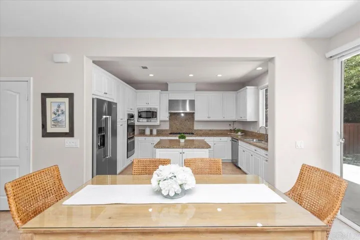 Desirable Terraza Home in San Elijo Hills. Gorgeous curb appeal, beautifully upgraded and eco-conscious with owned solar, this spacious residence offers 3 bedrooms plus a dedicated office/desk area and 2.5 bathrooms, 3 car garage – built in 2010 and boasting 2,182 Est. SqFt. The gourmet kitchen features granite countertops, stainless steel appliances, and a center island opening to an inviting family room with fireplace – perfect for everyday living and entertaining. The dining and living room combination showcases elegant tile flooring and custom built-in cabinetry. Upstairs, enjoy laminate wood flooring throughout, including the office/desk area, with tile in the bathrooms and laundry room. The expansive primary suite includes walk-in closet and a tranquil bath with soaking tub, dual sinks and walk-in shower. Custom built-in cabinetry is thoughtfully integrated throughout the home. Additional highlights include ceiling fans, air conditioning, tankless water heater and fully paid solar system for energy efficiency. Set on a private, pool-sized lot, the outdoor space features a large patio, spacious lawn, raised play area, mature landscaping and several fruit trees – ideal for entertaining, relaxing and play. The tandem 3-car garage includes overhead storage racks for added utility. Washer/Dryer/Fridge and Solar System are included. LOW MELLO ROOS and HOA! Located within the boundaries of the highly desirable Double Peak School. The San Elijo Hills community features: – Top-rated schools – Ball parks & soccer field – Picnic areas & playgrounds – Dog park & community center – Town center with stores and shops, restaurants and eateries, 18 miles of scenic trails & a 19-acre park – Over 1,000 acres of open space Enjoy the Southern California Coastal lifestyle, a short drive to the beaches and everything San Diego County has top offer. Seller to select services. Mello-Roos fees are estimated. All MLS and marketing information is approximate and not guaranteed.