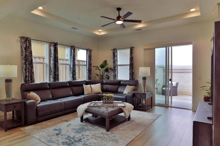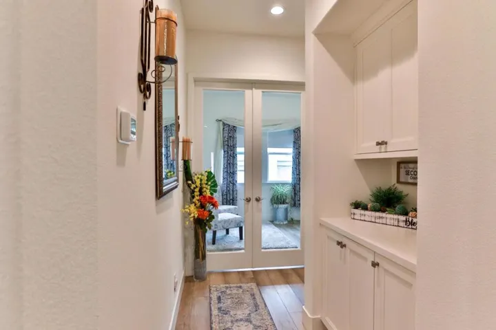 Elegance nestled in Hollister’s vibrant Twin Oaks 55+ retirement community. Welcome to this striking Spanish-inspired facade spanning 1902 sqft, 2 bedrooms, 2 baths, complete with a versatile office. The grandeur of 10-ft ceilings feels both expansive & intimate. The heart of the home is it’s open living area, gourmet kitchen, spacious & warm dining & living room. Host friends for dinner in the chef-inspired kitchen, walk-in pantry & ample counter space. Living room opens to a covered patio, serene spot for morning coffee, sunsets, sip wine w/neighbors in your private outdoor oasis. Den offers a quiet reading nook, study, or sitting room to unwind with your favorite podcast. Every corner from its sleek finishes to it’s thoughtful layout, reflect it’s quality & still in sparkling new-home condition. Featuring a tankless water heater, water softener, OWNED solar, Reverse Osmosis system, & EV charging port. Twin Oaks offers concierge led amenities to bring neighbors together to foster friendships focusing on fitness classes, educational and culinary workshops, planned group travel itineraries and vibrant social events. The Cannery Club offers exclusive access to state-of-the-art fitness facilities, a chefs kitchen, movement yoga studio, pickleball courts, pool & more.