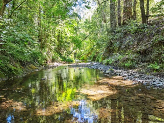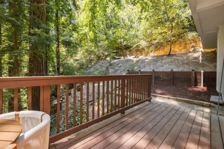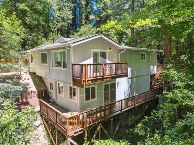 At $999,000 this Boulder Creek charmer is a deal with a kitchen that steals the show. The gourmet kitchen is a chefs dream with gleaming quartz countertops, custom soft-close cabinetry, a large center island and new stainless-steel smart appliances. Designed for both beauty and function, it is the heart of this modern two-story home. Quietly tucked at the end of a private lane, the 2,133-sq-ft residence offers a rare blend of privacy, luxury and natural beauty. With four spacious bedrooms and three bathrooms its perfect for families, guests, remote workers or anyone seeking room to breathe and unwind. Vaulted ceilings and abundant skylights bathe the interior in natural light, while a dedicated laundry with new stackable washer and dryer adds everyday ease. Living flows seamlessly outdoors to a 1,525-sq-ft redwood deck perched above year-round Bear Creek. A beloved feature Is the deck overlooking the creek. Whether sipping morning coffee, practicing yoga or hosting evening gatherings, the serene forest setting delivers unmatched peace and privacy. All on just over half an acre, minutes from downtown Boulder Creek yet worlds away in its tranquil redwood sanctuary. A fully equipped smart home designed for remote monitoring, it blends todays technology with timeless natural beauty.