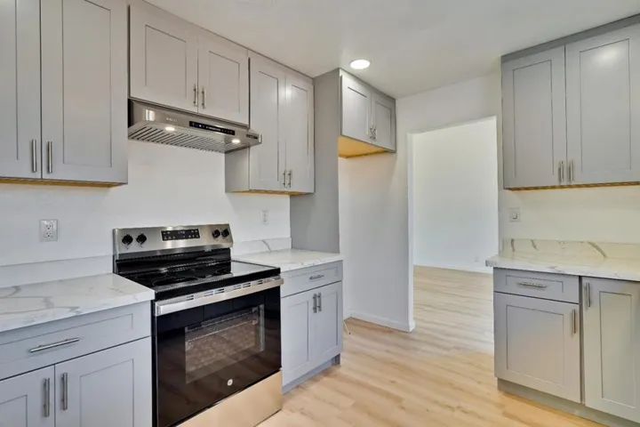 Welcome to this charming newly remodeled home nestled in the heart of San Jose, offering a blend of comfort and convenience with new kitchen, bathrooms and flooring. Spread across 1,852 sq ft, this residence features four spacious bedrooms, including a walk-in closet for ample storage. The kitchen is equipped with modern amenities such as an new electric oven, self-cleaning oven, and refrigerator, making meal preparation a breeze with new cabinets and quartz countertops. Enjoy family gatherings in the cozy family room with its kitchen/family room combo layout and a fireplace that adds warmth and character. The home boasts new tile and new vinyl/linoleum plank flooring throughout, providing durability and easy maintenance. The property includes newly install central AC and forced heat for year-round comfort and a convenient laundry setup located in the garage, complete with a washer and dryer. Vaulted ceilings enhance the sense of space, and the San Jose Unified School District serves the area. With 6,283 sq ft of lot space, there is plenty of room for outdoor activities. Two garage spaces offer secure parking, completing this desirable San Jose home.