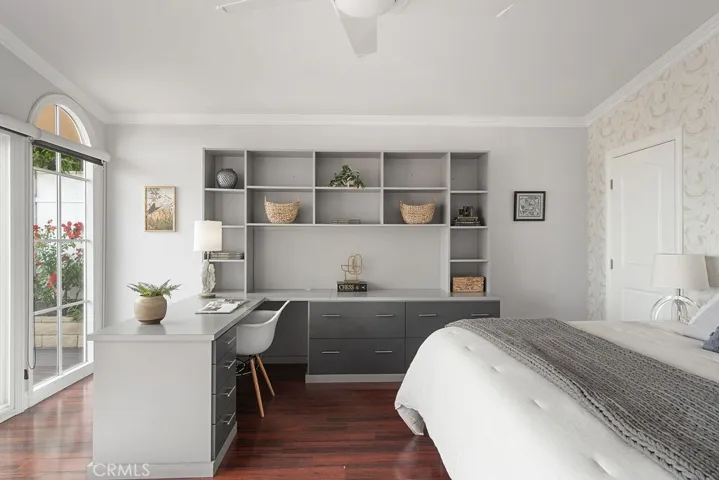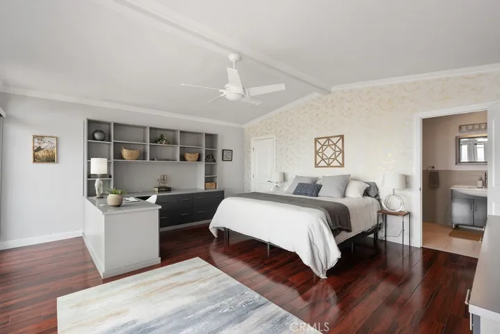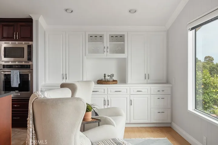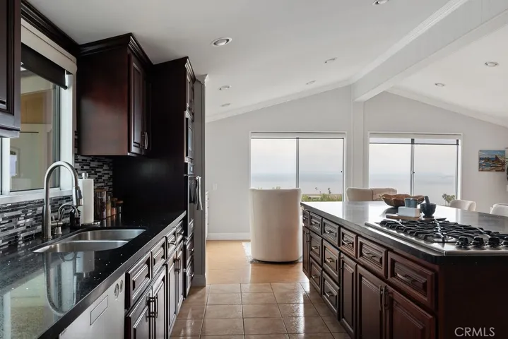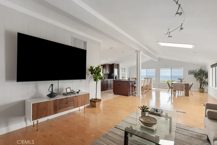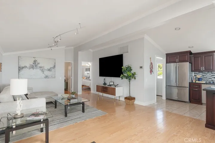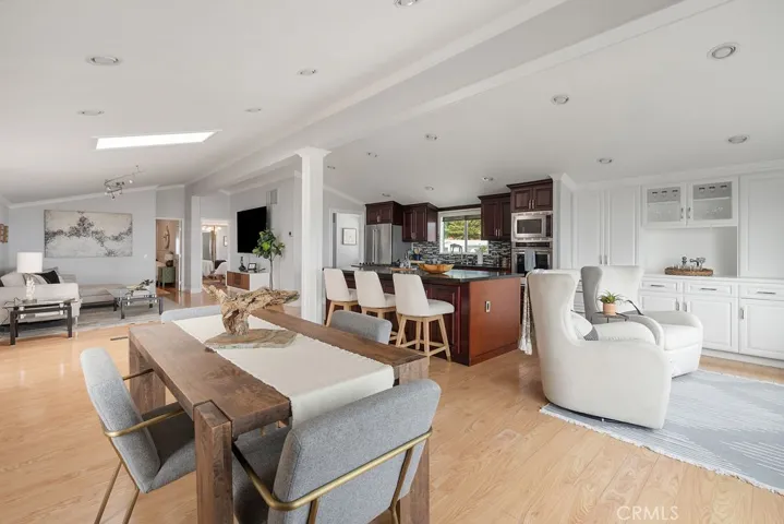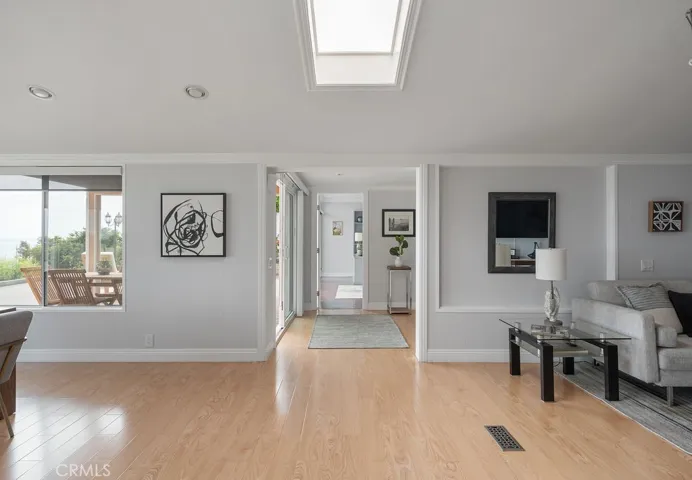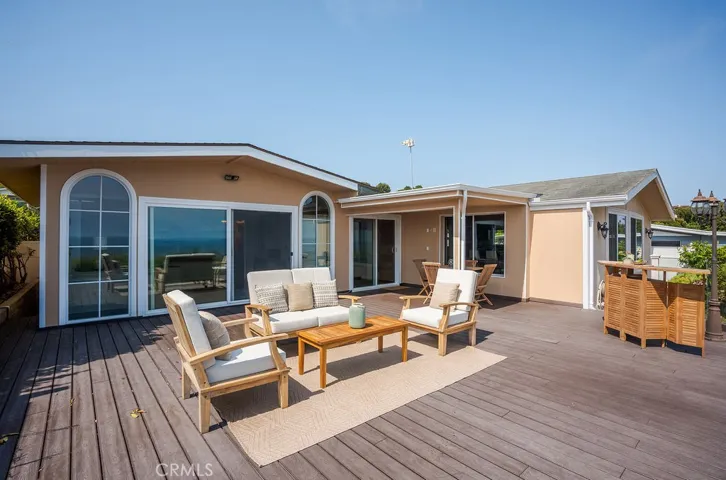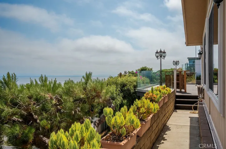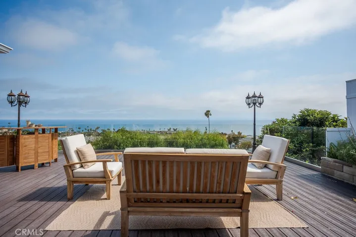 Perched on a quiet street, this 1,950 sq ft single-level residence offers magnificent, breathtaking sunset views of the ocean, Catalina Island, and golf course from both inside the home, and from the expansive Trex deck with modern glass railings. The spacious, open-concept layout features high ceilings, a gourmet kitchen with granite countertops, high-end stainless-steel appliances, soft-close cabinetry, and a large island with breakfast bar—perfect for entertaining or everyday comfort. The light-filled living and dining areas include crown molding, built-ins, and expansive windows to take in the stunning views. Two large primary suites provide plenty of space and privacy, each with attached well-appointed bathrooms and generous closets. A third bedroom offers flexibility for guests, hobbies, or a home office.
