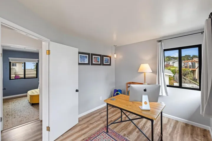 Introducing an exquisite ocean view retreat nestled in Pacific Grove’s coveted Beach Tract – 25 Coral Street. This newly refreshed home is the perfect blend of 1970s charm and modern coastal living. The formal entry leads into an inviting living area with expansive windows framing breathtaking Monterey Bay views. A spacious formal dining room is ideal for entertaining and flows seamlessly into the living and kitchen areas. The recently refreshed kitchen and cozy nook overlook the ocean, perfect for lingering over morning coffee. The three generous size bedrooms, each offer abundant natural light and coastal ambiance. Two fully redesigned bathrooms boasting contemporary fixtures and spa like finishes. An office space provides a quiet work environment for those working from home. A two car garage offers storage plus a separate laundry room for efficiency and ease. A large concrete pad allows for additional parking for recreational vehicles, toys, or guest overflow. Wake up to panoramic seascapes and walk just steps to the coast or take a short stroll to downtown Pacific Grove’s cafes, shops, galleries, and seaside trails. Perfectly positioned in a picturesque seaside community, this home captures the essence of Pacific Grove living.