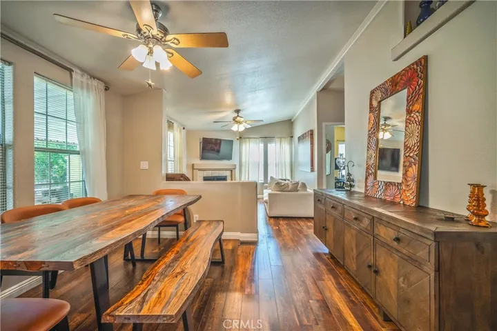 PRIDE OF THE PARK! Reduced to Sell FAST! This 3 bedroom 2 bath home built in 2005. This is what you have been waiting for. The home is located on a corner lot in the heart of the Park. The large front Porch is perfect for for morning coffee, for sitting and relaxing and enjoying the Sunsets. Once inside you will notice the beautiful Wood Flooring and Base Boards, and the awesome roomy floor plan. To the right is the nice cozy Family Room with Fireplace. There are 2 bedrooms and 1 Bath also. The Large Master Bedroom is to the Left. The Master has a Walk In Closet, The Master Bath has a Large Garden Tub with Shower and solar Tube for free daytime lighting. The home also has several upgrades including completely dry walled with Bull nose corners, The Larrge Kitchen has upgraded counters and cupbards and One large skylight. You will also find Dual Pane Windows throughout the home. Recently they also added a Tankless Water Heater. The homes exterior was painted less than 2 Years ago. All this in one of the most unique and sought after Parks in the IE Rancho Caballero Park with amenities galore which include two Pools (One Olympic Size and One heated year round) Spa, Tennis Court and 2 Pickleball Courts, Dog Park, and Large Clubhouse, Workout Room and Ball Field and Kids Playground.