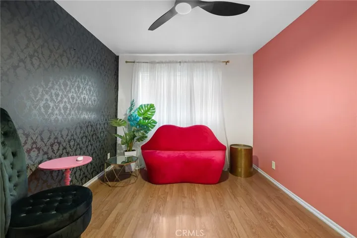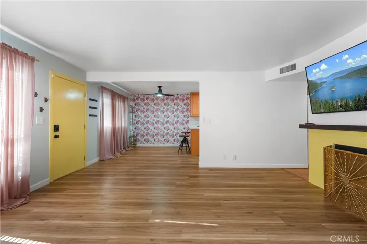 Welcome to 15015 Sherman Way #314, a beautifully upgraded top-level condo nestled in the heart of Van Nuys. This spacious 2-bedroom, 2-bathroom unit offers 1,004 square feet of comfortable and stylish living space, thoughtfully designed for both relaxation and convenience. Step inside to a bright and airy living room featuring sleek laminate flooring, a cozy fireplace, custom built-in cabinetry, and a mounted TV that’s included with the home. The open layout seamlessly flows into the dining area and kitchen, where you’ll find durable laminate flooring, rich wood cabinetry, abundant counter space, and plenty of storage—ideal for anyone who loves to cook or entertain. Down the hallway, you’ll discover two generously sized bedrooms and two full bathrooms, perfectly situated for privacy. The primary suite is a true retreat with its large walk-in closet, private balcony—perfect for your morning coffee or evening unwind—and a well-appointed en-suite bathroom. Additional highlights include an in-unit stackable washer and dryer, all major appliances (refrigerator, stove, dishwasher) included, and central heating and air. This unit also comes with two assigned tandem parking spaces in a secure gated garage, adding peace of mind and convenience. The well-maintained complex is located close to shopping, dining, public transportation, and everything Van Nuys has to offer. Whether you’re a first-time buyer, downsizing, or investing, this move-in ready condo is a fantastic opportunity to enjoy comfortable, low-maintenance living in a prime location.
