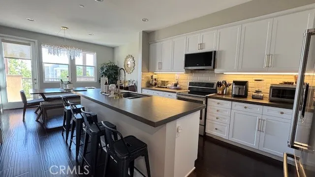 Townhome built 2017, has upgraded wood floor in the dining area and family area, dining area has huge kitchen island could sit four persons, recess lights, induction cooktop , solar system paid in full for worth $30,000 included on the sale, has two suite bedrooms with their own bathrooms and walk in closet Control nearly $39,000 worth of remote-controlled window shades for added comfort and convenience , central air and heat, two car garage and more .Shown as model home. A must see.
