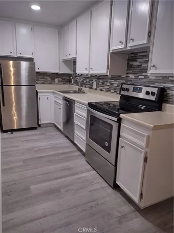 This charming upstairs unit has been thoughtfully updated with new flooring, fresh paint, and a remodeled bathroom. The kitchen features ample cabinetry and stainless steel appliances, ideal for both functionality and style.