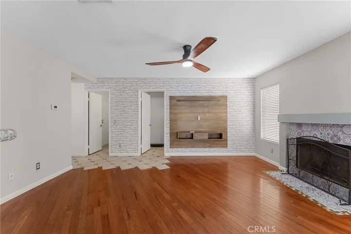 Step into a charming interior featuring a large formal living room with soaring ceilings, abundant natural light, and tasteful updates throughout. The kitchen opens to a cozy family room with a fireplace, recessed lighting, and sliding glass doors that lead to a covered patio surrounded by mature trees and new vinyl fencing—creating a private and peaceful outdoor retreat.
