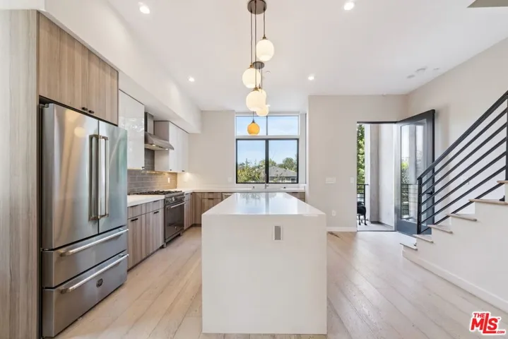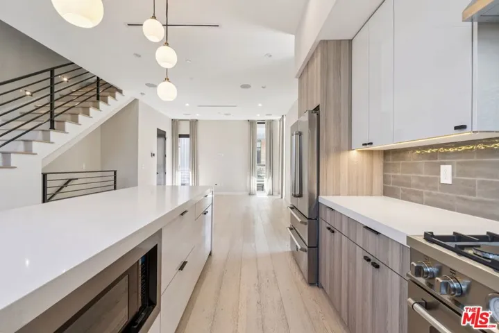 Perhaps Studio City’s most convenient location for California lifestyle at its best. Uniquely designated as Small Lot Single Family Home offers the privacy of single-family living but the security and ease of Townhouse living. It’s like the best of both. Built recently in 2020, this large 4Br/5Ba plan offers beautiful 7 1.2″ wide European Oak flooring placed above sound insulating ” cork throughout. The open modern Kitchen appliances are imported Italian design Bertazzoni surrounded by beautiful quartz surfaces. Front and Corner unit for additional peaceful home environment and sun-filled rooms on 3 sides. Enter either from Direct Entry Garage or through front garden terrace with its large firepit outdoor lounge. Every bedroom is a suite with its own bath. There is also a guest Powder room off the main entertaining living space & kitchen. Top floor is for entertaining grandly, opening to a huge mountain-facing covered terrace. There is also a full bath on this level, in case of a sleepover guest. Refreshment station with fridge & catering counter is a handy amenity for Super Bowl Sundays or awards night festivities. Perfect as a screening room for large groups as well. Spacious interior laundry area, central air conditioning & heat, Convection Oven, Microwave, Gas range, Ice Maker are all some of the additional special features at this luxury residence. Walk to the charming Tujunga Village shopping & restaurant destinations less than 1 block away.