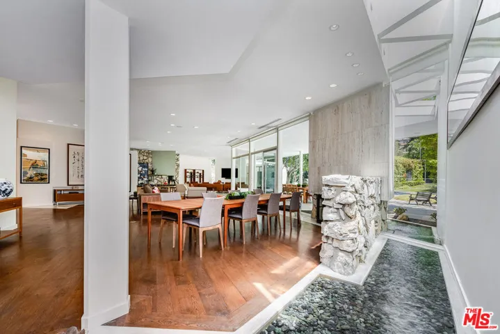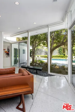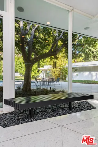 A true architectural gem by master architect A. Quincy Jones, AIA, this mid-century masterpiece is nestled in the heart of Beverly Hills on a rare street-to-street 1.2-acre lot north of Sunset. Exemplifying timeless California modernism, the home showcases original mid-century details including iconic floor-to-ceiling glass walls that flood the interiors with natural light, terrazzo flooring, fieldstone accent walls, and a classic step-down bar. The open-concept layout seamlessly connects expansive living and dining spaces to multiple patios and outdoor spaces, ideal for effortless indoor-outdoor living. The primary suite offers a serene retreat with a cozy fireplace, dedicated relaxation lounge, and a spa-inspired bath, all opening to a lush, park-like backyard complete with a swimmer’s pool and N/S tennis court. A thoughtfully designed two-unit guest house complements the original architecture, providing additional space and privacy while honoring the legacy of Jones’ vision. This is a rare opportunity to own a residence that combines architectural integrity and historic significance.