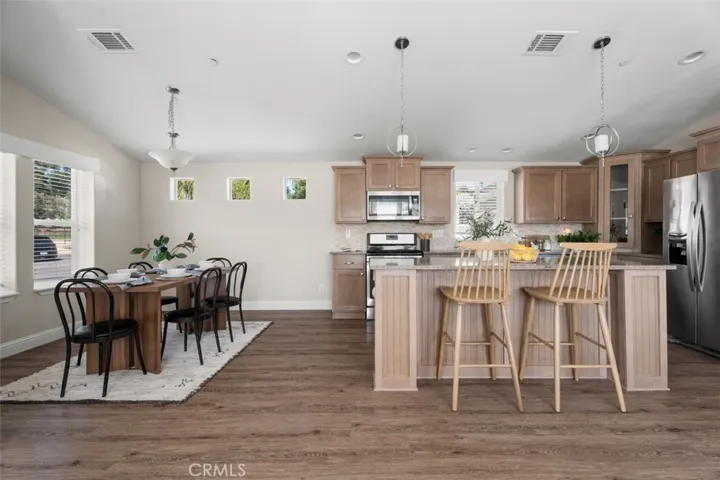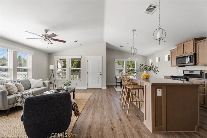 Great location within Oak Tree Ranch, next to a vacant lot & backing to the seasonal creek creates a uniquely private homesite! Beautiful open floor plan! This 2018 manufactured home features 3 bedrooms, 2 baths,1420 sqft with attached 2 car garage and professionally landscaped and fenced back yard! Located close to the community pool ,club house, mail boxes and guest parking! Enter directly into the living room with Kitchen and dining room creating a spacious open floorplan! Transom windows let in an abundance of natural light and combined with the high ceilings create a light, bright and spacious interior. The garage has direct access to the house through the laundry room. Luxury wood plank vinyl flooring throughout with carpet in the bedrooms. Ceiling fans in all bedrooms! Guest bath has a tub shower combo and tiled backsplash on the single sink vanity. Master bath has a large, beautiful step in shower with glass doors and separate toilet room, cabinets for linen and a vanity with storage. The Kitchen features recessed lighting , gas cooktop and oven, dish washer, microwave , stainless steel double sink. Large island with breakfast bar and contemporary pendant lighting fixtures. Oak Tree Ranch is a beautiful, all age community with community pool, bbq area, car washing station, dog park, picnic area, play ground, stage for special events, lovely remodeled club house with library and full kitchen. Manicured lawns and beautiful park like setting welcome you home! There are areas for visitor parking for family and friends. Come and enjoy the lifestyle you’ve been looking for!