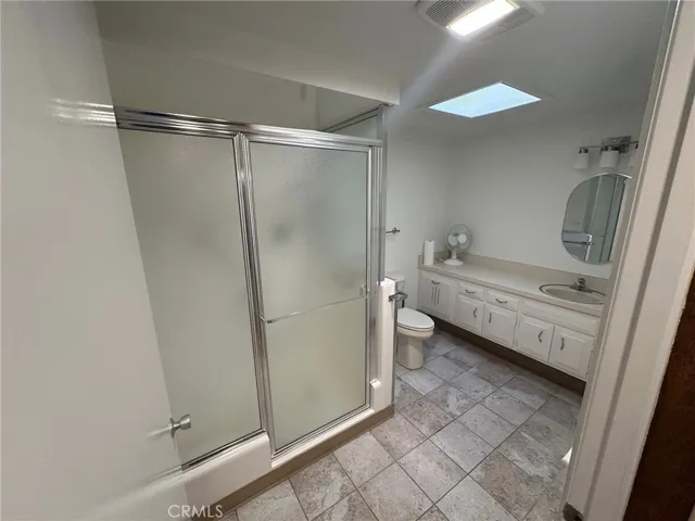 The bathroom offers a tiled floor, walk-in shower, and a skylight for natural lighting. Both bedrooms are carpeted for comfort, with the master bedroom providing direct access to the wraparound tiled patio through a sliding glass door—perfect for enjoying Southern California’s outdoor living. Convenient outdoor storage and a designated carport (Carport 137, Space 17) are included.