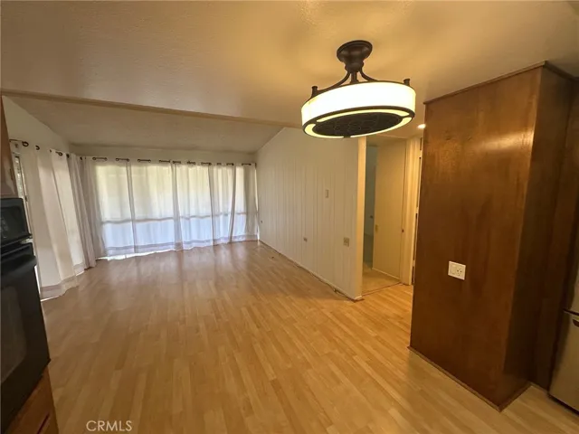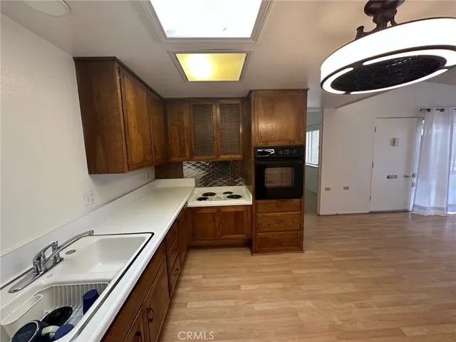 Welcome to this inviting 2-bedroom, 1-bath cottage nestled in a serene and vibrant 55+ community. This home features an open floor plan with laminate flooring flowing from the spacious living room into the well-equipped kitchen. The kitchen includes classic wood cabinetry, a skylight, ceiling fan, and built-in appliances: cooktop, oven, and refrigerator.