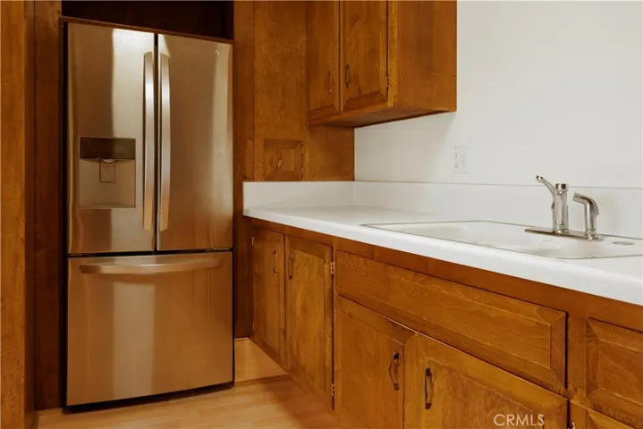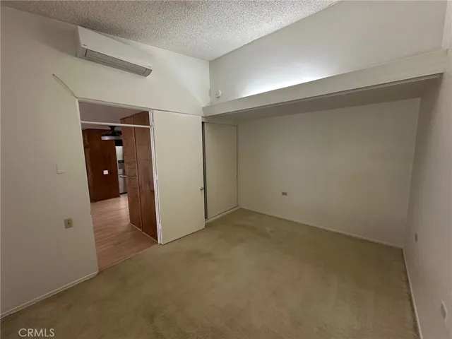 The bathroom offers a tiled floor, walk-in shower, and a skylight for natural lighting. Both bedrooms are carpeted for comfort, with the master bedroom providing direct access to the wraparound tiled patio through a sliding glass door—perfect for enjoying Southern California’s outdoor living. Living spaces feature a heat pump for efficient heating and cooling. Additional features include vertical blinds throughout and a heat pump for efficient heating and cooling. Convenient outdoor storage and a designated carport (Carport 137, Space 17) are included.